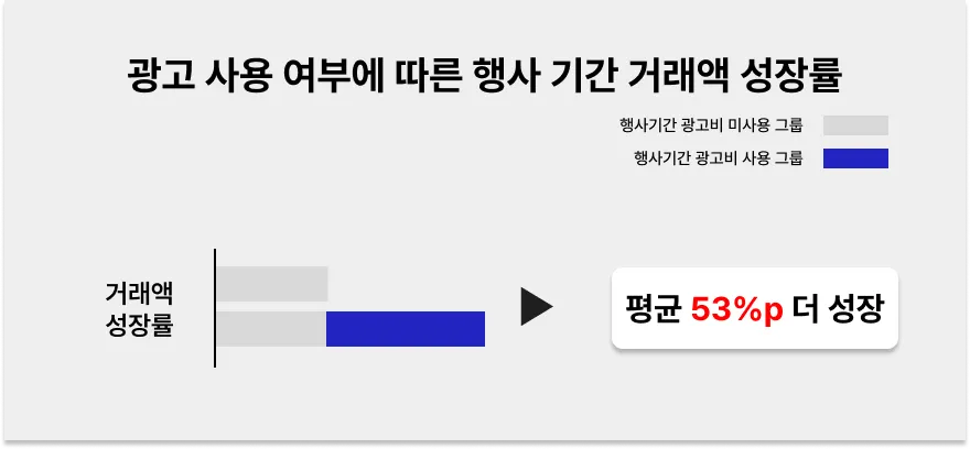 실제로, 10월 행사 기간에는 광고비를 사용한 그룹은 미사용 그룹보다 평균 53%포인트 더 높은 성장률을 기록했습니다.