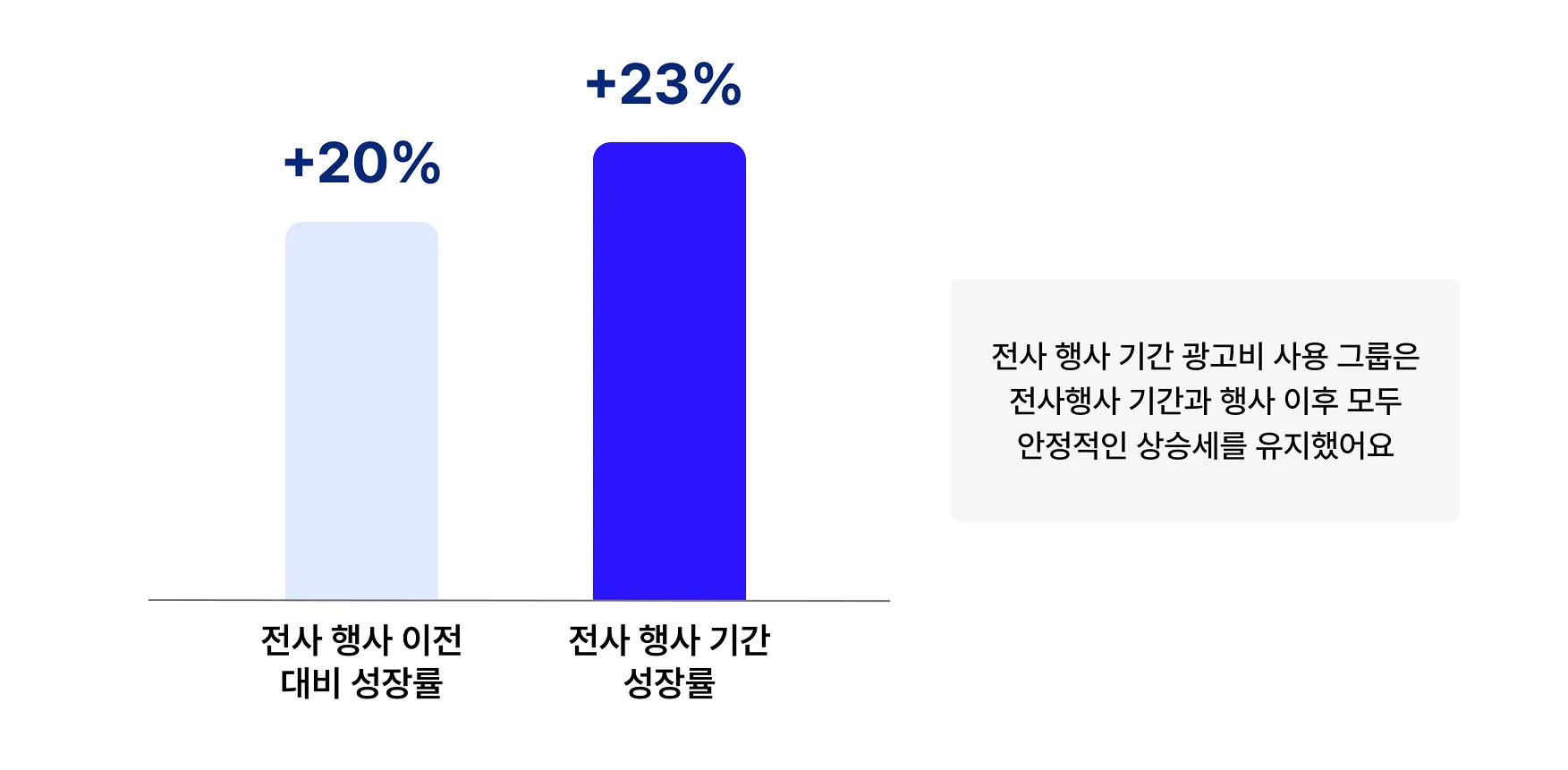 이전 전사 행사 기간을 살펴보면, 이 기간 광고를 통해 부스팅한 마켓은 전사 행사 기간 거래액이 평균적으로 약 23% 상승했습니다.