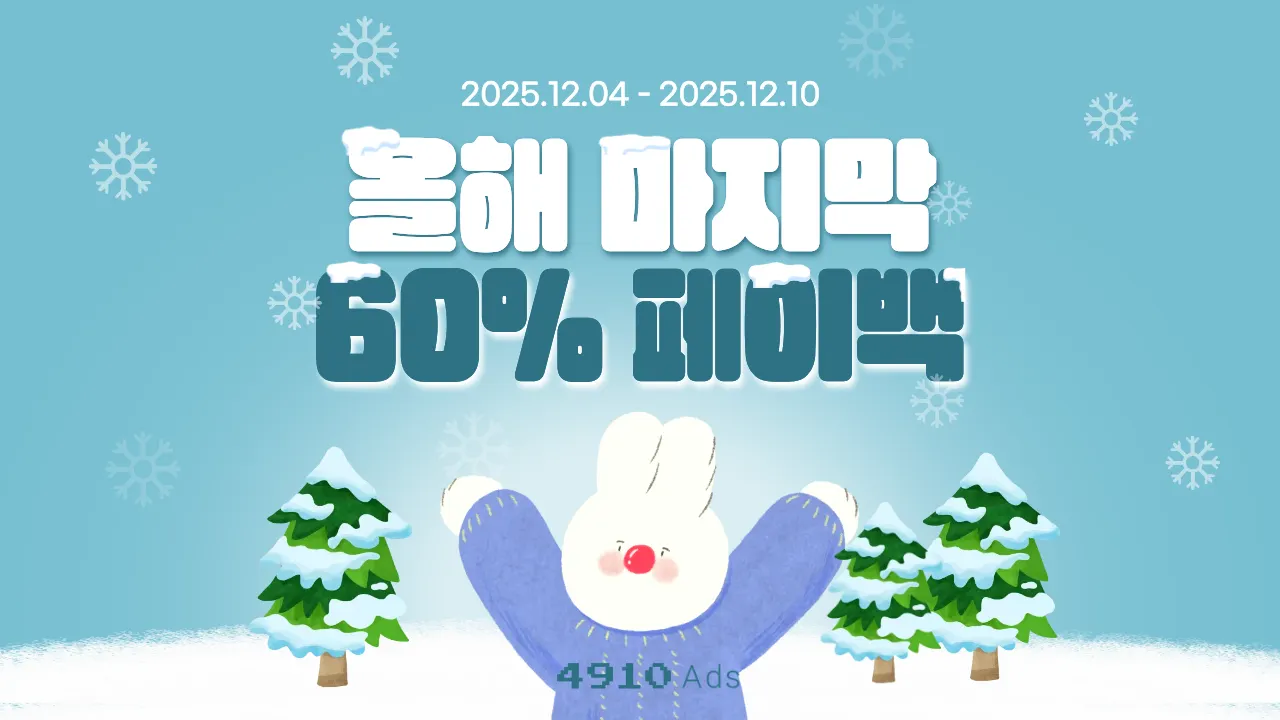 광고비 증액분의 최대 60%, 금액 제한 없이 무제한으로 페이백 해드리는 프로모션입니다.