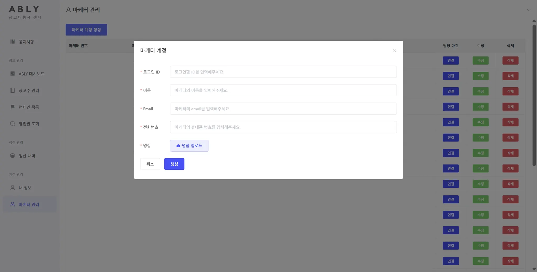 마케터 관리
