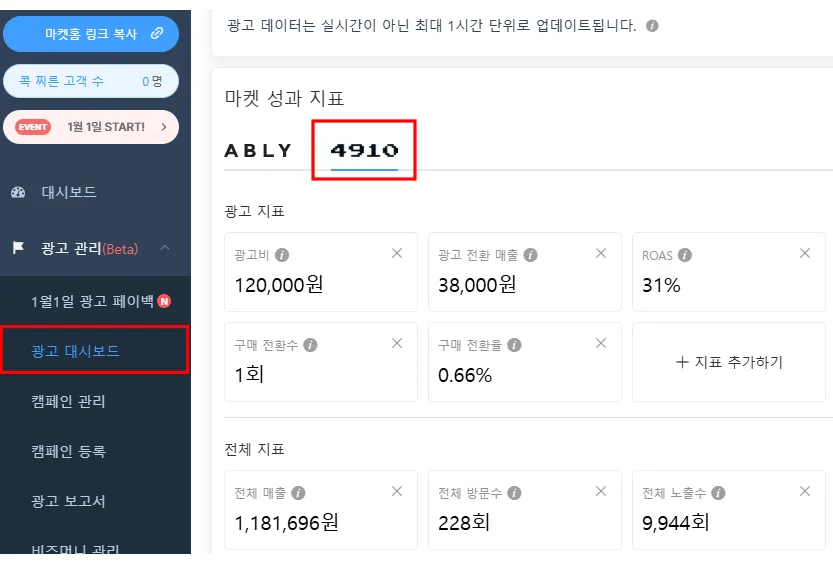 이제 광고 대시보드에서 보다 다양한 지표를 통해 광고 성과를 분석하고,