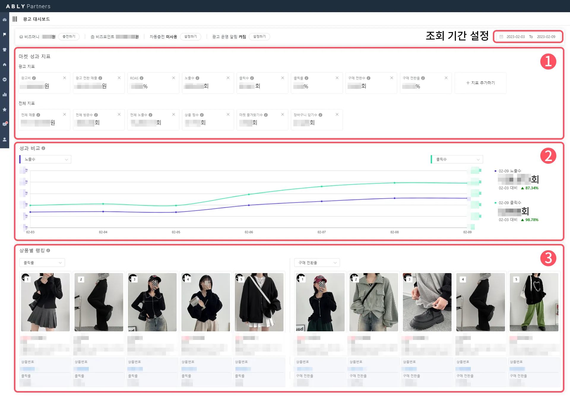 제공위치 : 셀러어드민 - 광고관리 - 광고 대시보드 화면