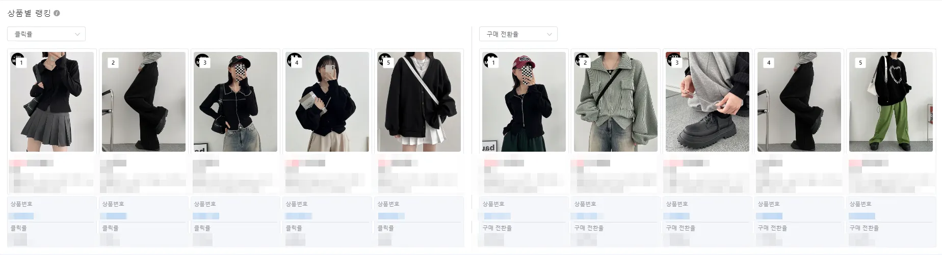 클릭률 / 전환율 선택 : 클릭률이 높은 상품이, 전환까지 잘 이뤄지는지 확인 가능