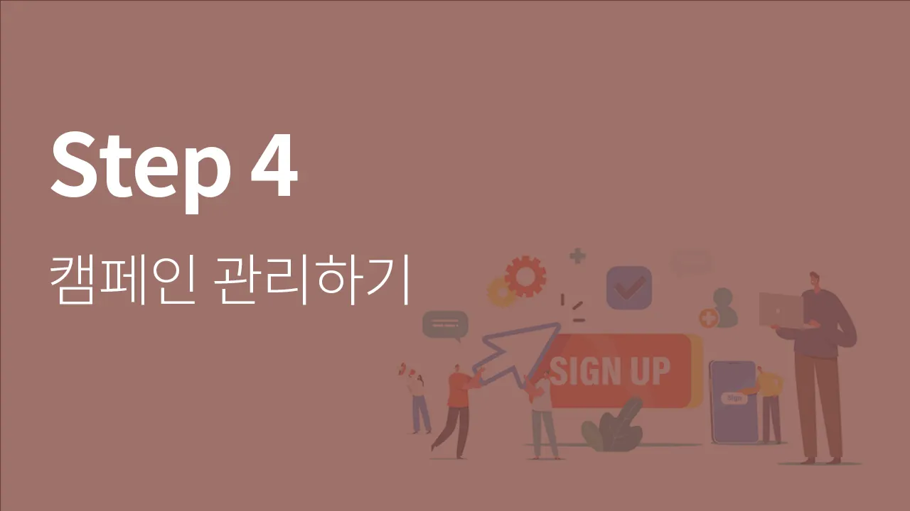 캠페인 등록을 마친 뒤, 캠페인을 수정 또는 삭제하거나 다른 캠페인을 만드는 경우가 발생하는데요! 이번 STEP에서는 캠페인을 관리하는 방법을 살펴보겠습니다. (캠페인 수정 / 상품 수정)