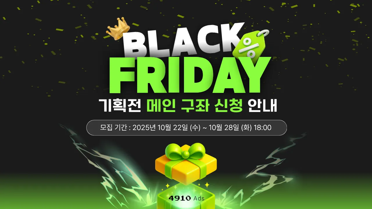 1년 중 최대 유저 유입과 거래액 갱신을 기대할 수 있는 4910 블랙프라이데이 행사 기간에 맞춰,
