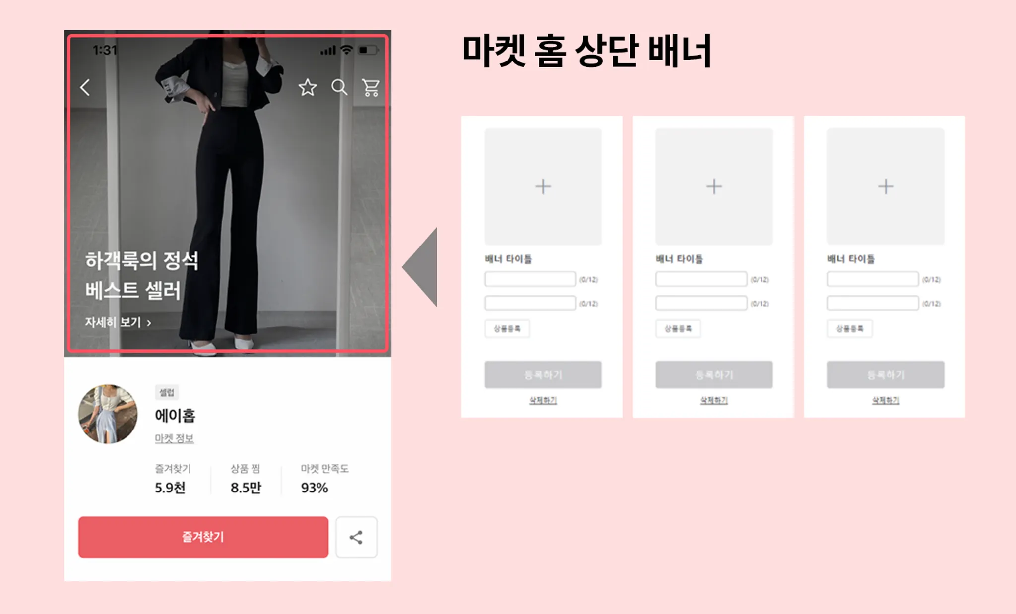 [설정 위치 : 셀러 어드민 - 마켓 관리 - 배너관리]